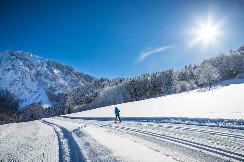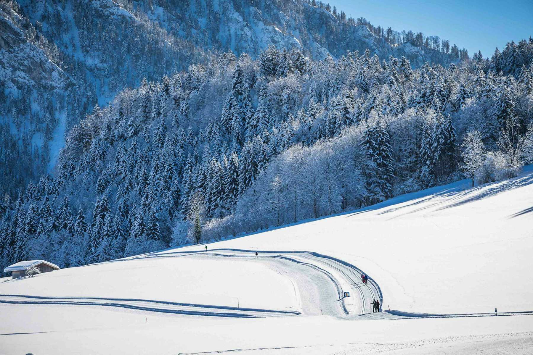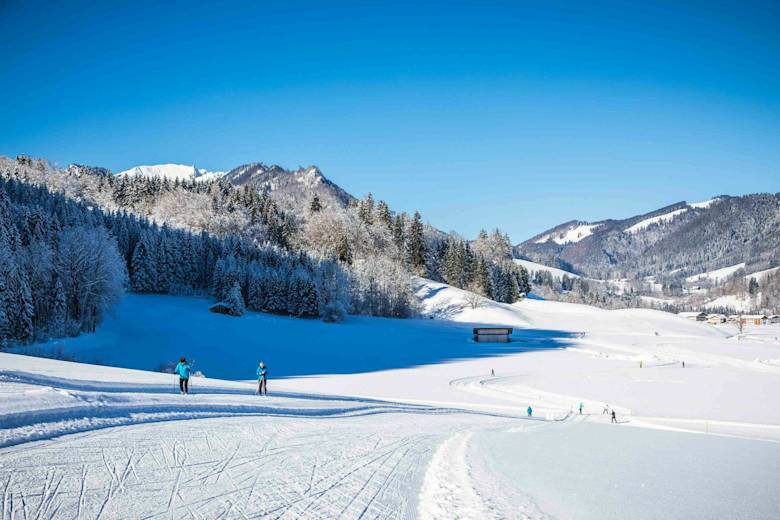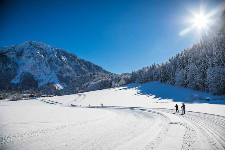 Die Fuchs Loipe in Ruhpolding in Bayern wird klassisch und im Skating-Stil gespurt. Sie liegt traumhaft zu Füßen des Unternberg und begeistert sowohl Anfänger als auch Profis mit ihrer flachen Streckenführung.