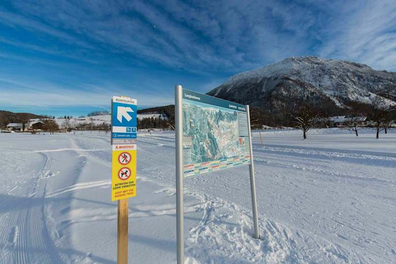 Über den Verbinder V6 gelangt man auf die Laubauer Loipe und kann bis zur Chiemgau Arena laufen - von hier gelangt man im Halbstundentakt mit der Dorflinie retour nach Ruhpolding.