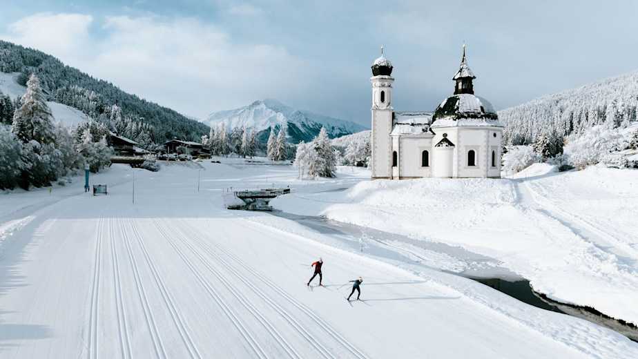 Die Seekirchl Loipe in Seefeld in Tirol ist eine einfach Loipe für Anfänger und Einsteiger, die im klassischen wie im Skating-Stil gespurt wird. Der Rundkurs ist 3 km lang und man kann entweder beim Seekirchl oder bei der Arena 365 in die Loipe einsteigen.