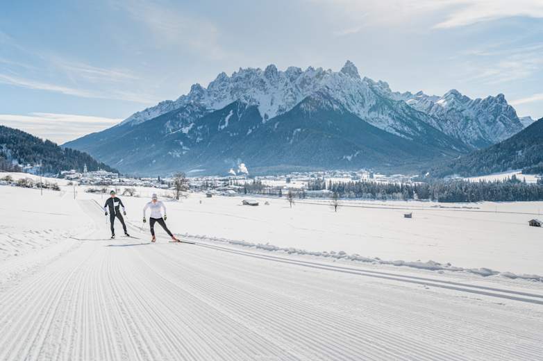 Langlaufen vor der prächtigen Dolomitenkulisse bei ToblachFoto: wisthaler.com, Tourist Info Toblach