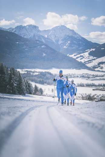 Das gesamte Tal lässt sich sogar auf der 18 Kilometer langen Talloipe durchlaufen – inklusive 672 Höhenmetern, umrahmt von einer herrlichen Gebirgslandschaft mit typisch Südtiroler Flair.