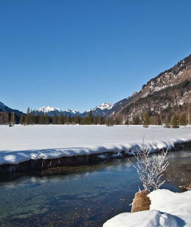 Wenn sich die malerischen Allgäuer Alpen in Bayern rund um Füssen in ein weißes Farbkleid hüllt, gibt es kaum etwas Schöneres als die winterliche Seenlandschaft auf Skiern beim Langlauf zu entdecken und die gesunde Bewegung inmitten einer grandiosen Alpenkulisse zu genießen. Dies können wir in Füssen, zwischen der Sportanlage Weidach und dem Bootshafen Füssen erleben.