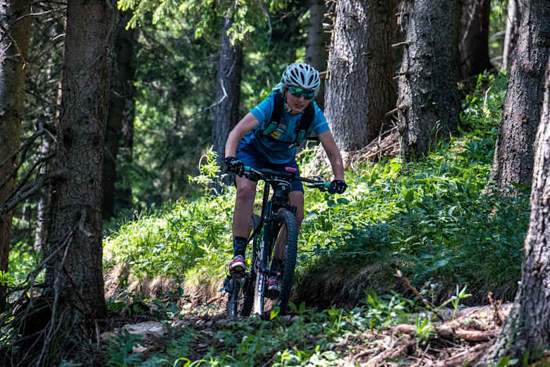 Auch dei Abfahrt von der Bürgeralm über einen lässigen Trail macht viel Spaß!Foto: Anja und Sandro, www.basecampas.at