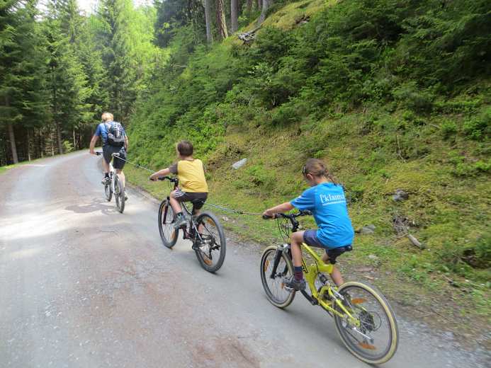 Für Kinder, die schon selbst treten können, kann man eine Reepschnur mitnehmen und sie stellenweise abschleppen.