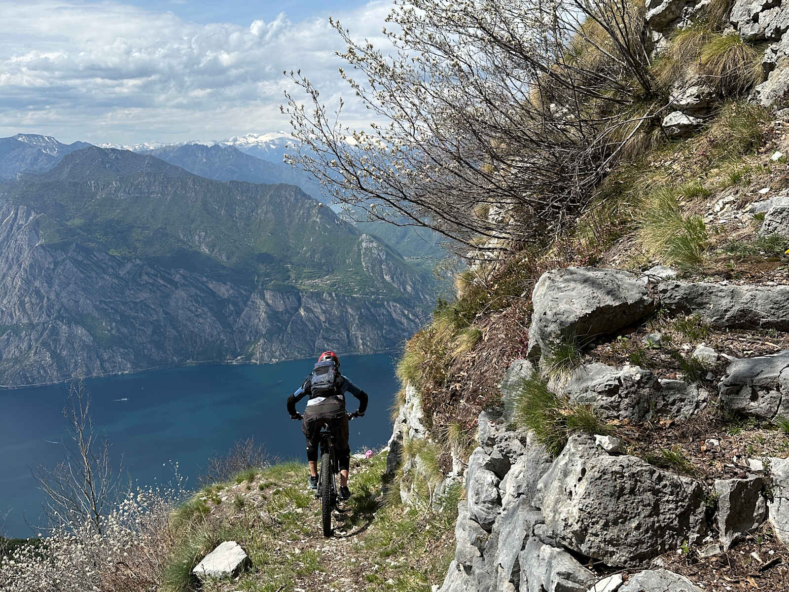 Von der Bergstation des Monte Baldo in den Gardaseebergen muss man sich den Downhill in seiner epischen Länge noch über einen knackigen Anstieg zum Monte Altissimo (2.074 m) verdienen. An der Damiano-Chiesa-Hütte am Altissimo gönnt man sich noch eine Rast mit herrlicher Aussicht in die Weite des Etschtales in Richtung Verona und in die Ebene des Veneto. Hier beginnt der legendäre Klassiker, der „sentiero 601“ nach Nago und ein technischer Abfahrtsgenuss mit mehr als 2.000 Metern.
