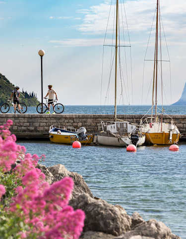 Bald erreicht man nach einer angenehmen Abfahrt den Ort Navene und weiter über die Fahrradroute nach Malcesine. Am letzten Stück führt die Route durch ein Naturschutzgebiet - bitte nicht mehr Offroad fahren - die Natur und die eifrige Forstpolizei bedanken sich dafür.