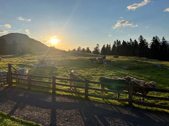 Die Tour beginnt rund 500 m nordöstlich von Strad. Hier nimmt man den Forstweg, der an der alten Klufthütte vorbei steil bergan führt. Der Wald spendet zwar teilweise Schatten, aber in Summe ist es eine schweißtreibende Angelegenheit und eine durchaus sportliche Herausforderung, ehe man die Haiminger Alm auf 1.786 m erreicht.