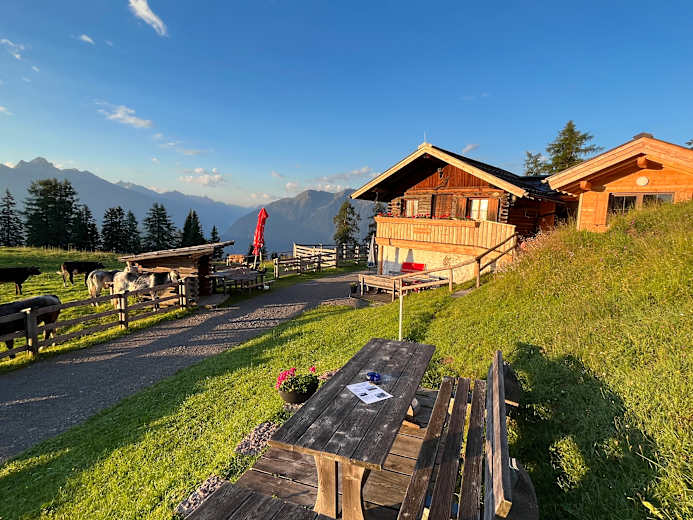 Die Haiminger Alm hat in den Sommermonaten geöffnet und lädt zu wohlverdienten Rast ein.