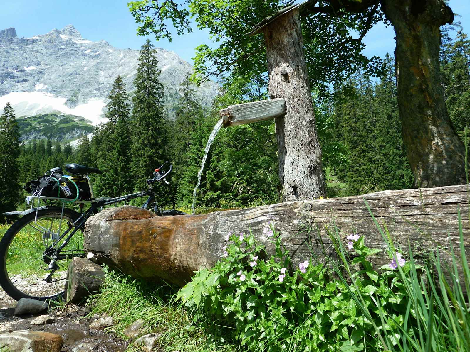 Ein beliebter und anspruchsvoller Mountainbike-Klassiker im Karwendelgebirge. Von Hinterriss (973 m) führt die Strecke durch die faszinierende Landschaft des Tiroler Karwendels. Technisch anspruchsvoller Forstweg ab dem Ahornboden (1.399 m) vorbei an den imposanten Felswänden der Kaltwasserkarspitze (2.733 m) und weiter über den Hochalmsattel bis hin zum Karwendelhaus (1.797 m).