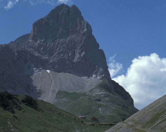 Sehr anspruchsvoller, aber kurzer, Singletrail vom westlichen Lamsenjoch (1.900 m) zur Lamsenjochhütte (1.953 m) inmitten der Bergwelt des Tiroler Karwendel. Atemberraubende Aussicht auf die Gipfel in der „Silberregion Karwendel".