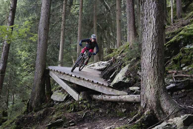 Ganz bequem geht es mit der Rosenalmbahn bis zur Mittelstation. Von dort startet der leichte bis mittelschwierige 5,2 Kilometer lange Singeltrail. Über 700 Höhenmeter geht es überwiegend durch Waldterrain bis ins Tal. Auf 5 km fordert die Strecke mit Serpentinen, Northshore Elementen und Pumps einiges an Geschicklichkeit und Kondition.
