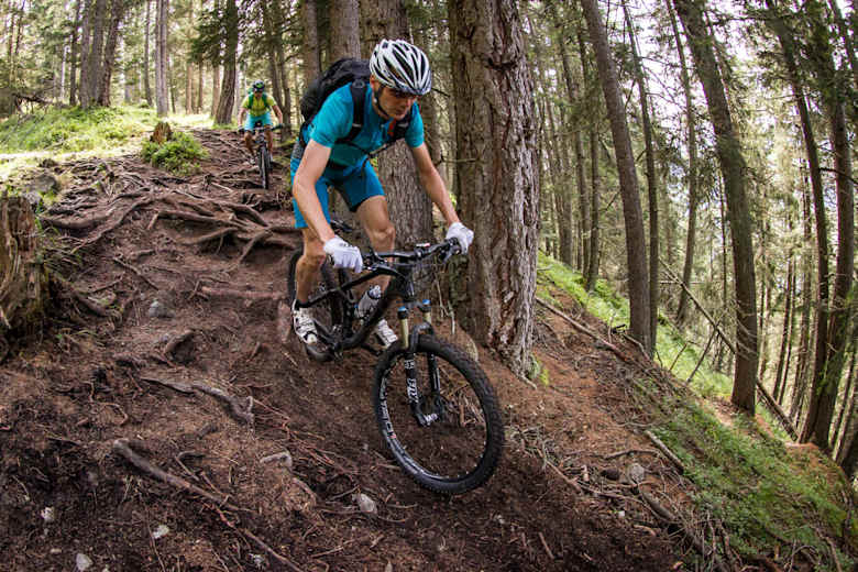 Fahrtechnisch durchaus anspruchsvolle Zweiländer Tour zum malerischen Schwarzee hoch über Nauders und dem Unterengadin. Wer die knackigen Singletrail Aufwärtspassagen meistert darf sich ruhig "Kletterkönig" nennen. Bergab auf teils grobem Schotter, Wald- und Wiesenweg sowie Asphalt retour nach Nauders.