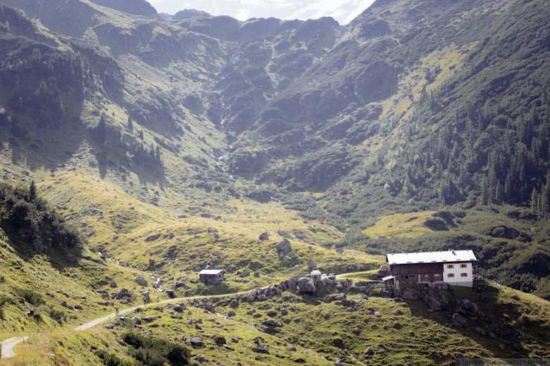 In Westendorf führt die Route auf der Straße über den Ortsteil Holzham ins Windautal. Am Lendwirt vorbei folgt man dem beschilderten Weg 208 tiefer in das Windautal entlang dem tosenden Wildbach der durch eine idyllische Landschaft. Vorbei am Jagerhäusl und der Steinberghütte erreicht man nach einigen Kilometern die Gamskogelhütte.