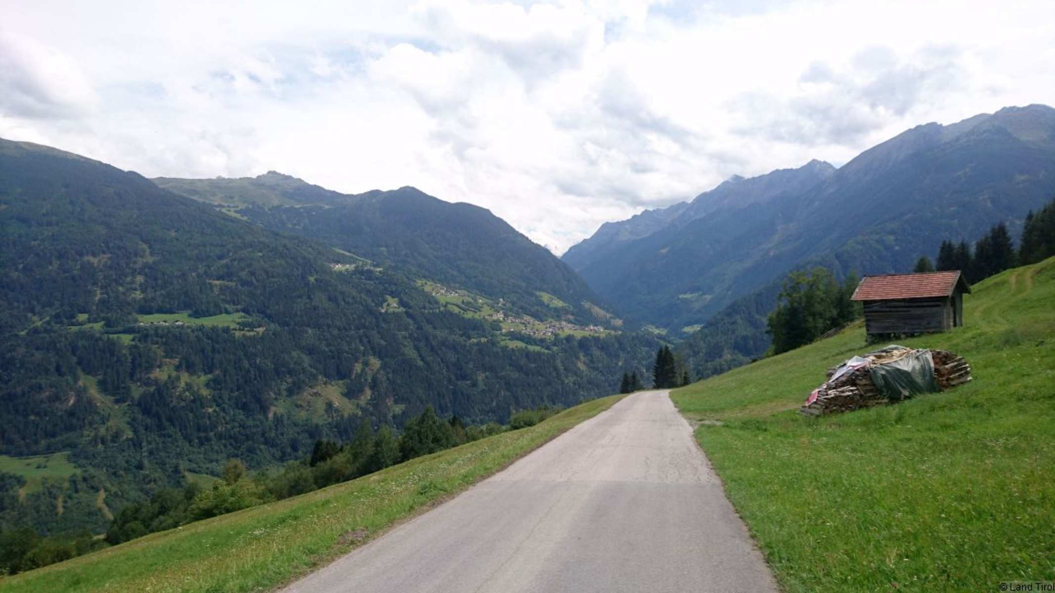 Abzweigung Pitztal-Bike-Weg Richtung Farmie, ab Audershof auf einem Schotter-Forstweg bis zur Venetalm.