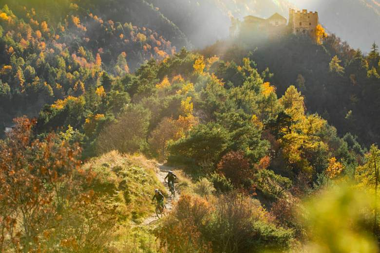 Der kupierte, zackige und technische Latscher Trailzauber ist der ideale Trail für Biker mit fortgeschrittenem Fahrkönnen. Hier am Taleingang in das Martelltal in der Ortler-Cevedale-Gruppe erlebt der erfahrene Biker richtigen Fahrgenuss. Der Wechsel zwischen Tretpassagen und leichtem Bergab-Flow erfordert einige Sicherheit im Sattel. Eine spannende Tour für Könner im Vinschgau in Südtirol.