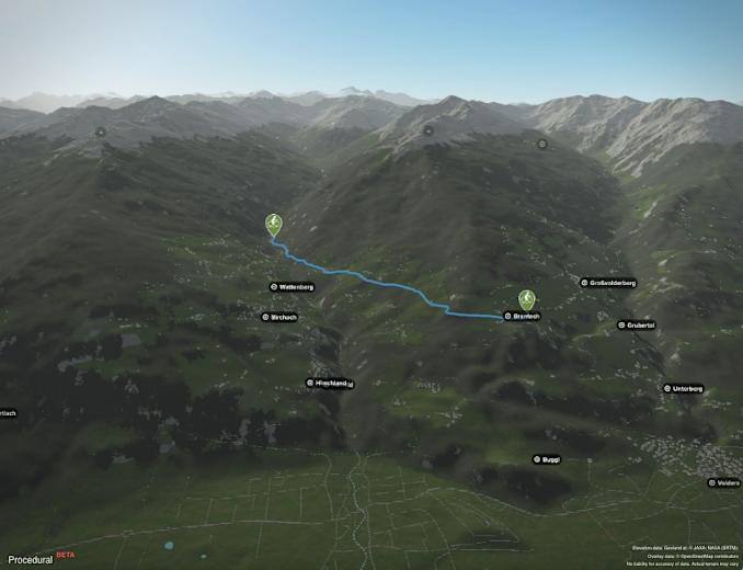 Vom Brantach Hof am Volderberg geht es in südöstlicher Richtung über den Vögelsberg hinein zum Gasthof Säge am Wattenberg.