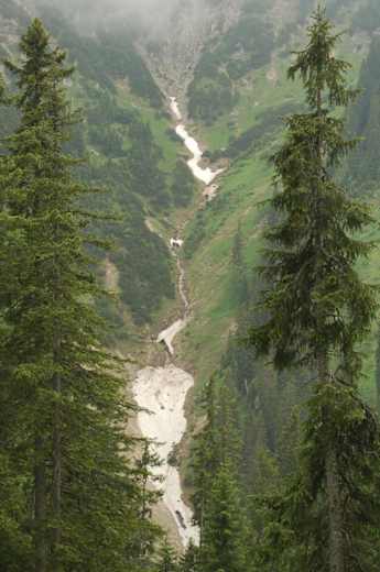 Nach der Pause, schiebt man sein Bike ab besten über die Wiese und wandert über den Pfad links von der Hütte. Bald kommt man zu einer Weggabelung, wo man sich rechts halten und ungefähr 3 km hinabfahren muss. Am Weg angekommen, zweigt man auf diesem ein weiteres Mal rechts ab. Danach muss man geradeaus, bis man zu einen Holzlagerplatz kommt. Hier muss man bis zur Rotmoosalm links talauswärts fahren. Jetzt folgt man der Beschilderung zum Linderhof und fährt direkt ins traumhafte Elmautal. Nach etwa 6 km biegt man an der Wegekreuzung rechts auf einen Forstweg nach Graswang ab.