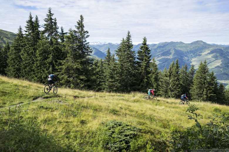 Der Fleckalm Trail in den Kitzbüheler Alpen ist mit mehr als sieben Kilometern Länge Tirols längster Singletrail und war 2013 Teil der Mountainbike-WM-Strecke. Mithilfe der Fleckalmbahn ist die mittelschwierige Strecke bequem von Kirchberg in Tirol aus zu erreichen. Anspruchsvolle Elemente machen diesen Trail zu einem absoluten Downhill-Erlebnis! Wer nach noch mehr Abwechslung sucht, kann sich von der lokalen Streckenvielfalt am Lisi Osl Trail oder am Gaisberg Trail überzeugen.