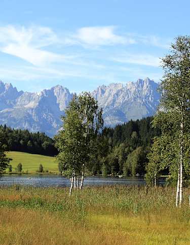Einfache Mountainbike-Runde in den Kitzbüheler Alpen in Tirol: Diese Roundtour führt über geschotterte und asphaltierte Wege in einer Runde von und nach Kitzbühel. Am Weg sind bis auf ein paar mäßig steile Anstiege keine großen Schwierigkeiten zu bewältigen. Eine Genussrunde wie gemacht für einen warmen Frühlings-Sonntag.