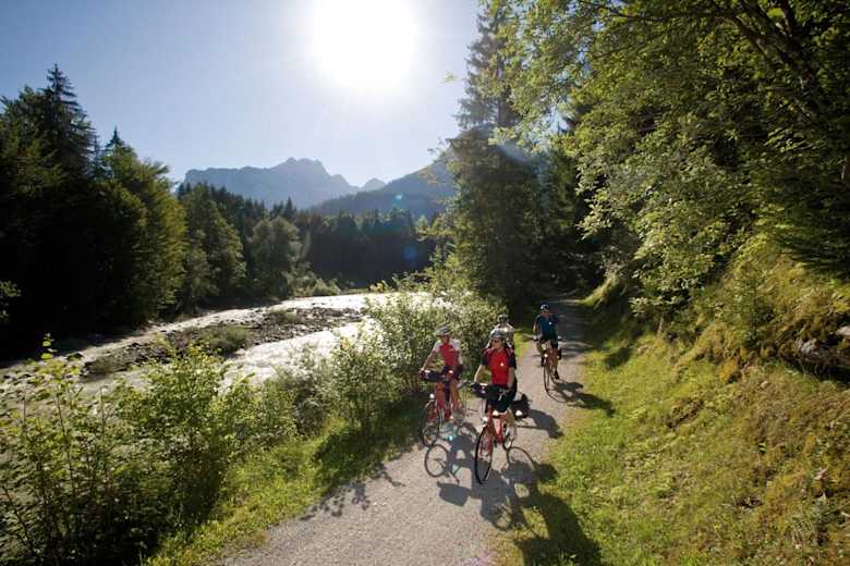 Blick auf Radler und Fluss bei LoferFoto: SalzburgerLand Tourismus GmbH, Leo Himsl