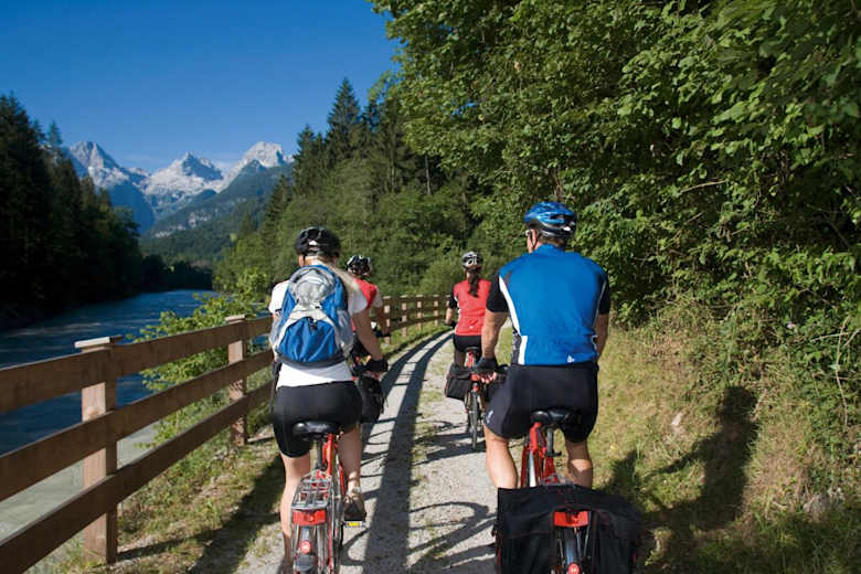 Sechste Etappe am Tauernradweg: Wer von Salzburg nicht nach Passau weiterfährt, sondern die Rundtour zurück nach Bruck macht, radelt durch das Salzburger Saalachtal und kann dabei das eindrucksvolle Panorama der Berchtesgadener Alpen genießen. Die Strecke geht fast durchgehend leicht bergauf, ist aber dennoch für Familien geeignet, da man fast durchwegs auf asphaltierten Nebenstraßen fährt.