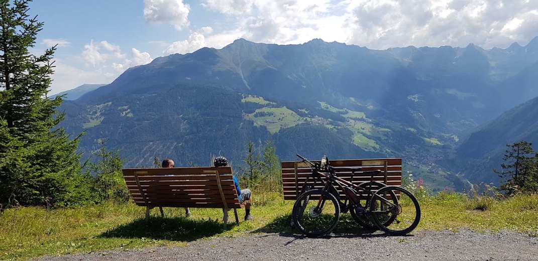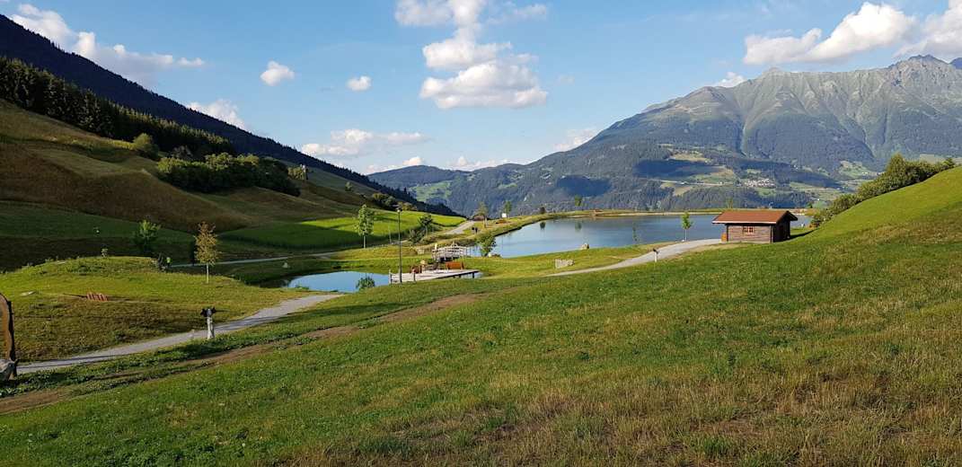 An den Osthängen des Matekopf im Oberinntal Tirol verläuft diese wunderschöne Mountainbike-Runde. Auf dem Fisser Almweg in der Samnaungruppe kommt man dann an einer Waldkapelle und der Windles Wiese, einem Grillplatz vorbei. Der Blick kann dabei immer ins Inntal oder ins abzweigende Faggetal schweifen.