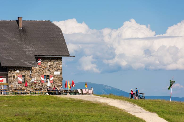 Eine Rast in den urigen Hütten auf der Saualpe ist ein Muß für jeden Mountainbiker; eine typische Lavanttaler Jause mit Apfelsaft oder Apfelmost sowie ein herrlicher Panoramarundblick sind die Strapazen wert.