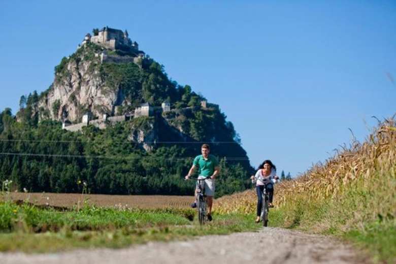 Mit dem E-Bike die schöne Kulturlandschaft in den Gurktaler Alpen erkunden: Auf dieser mittelschweren Tour geht es von der Sonnenstadt St. Veit an der Glan zum Völkermarkter Stausee, vorbei an der Burg Hochosterwitz und durch das „Tal der Könige“ mit seinen historischen Hügelgrabanlagen rund um Waisenberg. Und zum Schluss belohnt ein Bad am Stausee.