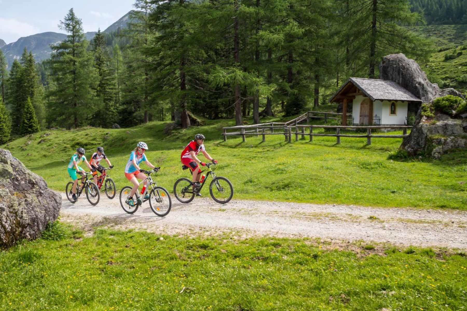 Mittelschwere Mountainbike-Tour im Pongau im Salzburger Land. Von Radstadt verläuft die Route auf Asphalt und Schotterwegen über Forstau und der Hintereggalm (1.340 m) zur Vögeialm (1.356 m).