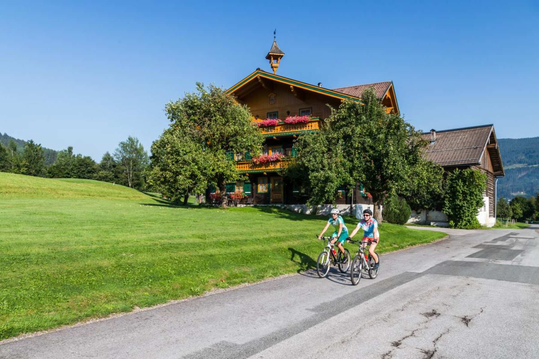 Anspruchsvolle Mountainbike-Tour im Pongau im Salzburger Land. Von Radstadt verläuft die aussichtsreiche Rundtour inmitten der Salzburger Sportwelt auf Asphalt und Schotterwegen über den Perneggweg und Eckwaldweg zurück nach Radstadt. Unterwegs laden mehrere Gasthäuser zur Einkehr ein.
