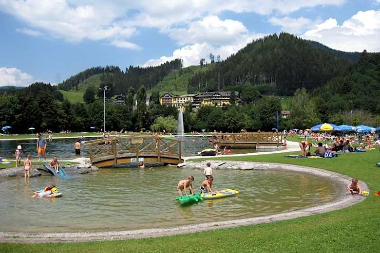 Schöne Radtour im Pongau im Salzburger Land. Von Radstadt geht es auf dem Ennsradweg bei Mandling über die Landesgrenze in die Steiermark. Es lockt der Badesee Pichl mit einem Sprung ins kühle Nass. Er gehört zu den saubersten Badeseen der Steiermark.