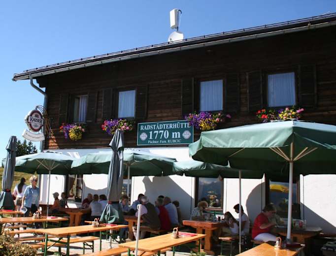 In der Radstädter Hütte, am Fuße des Gipfels, kann man gemütlich einkehren, bevor man nach Radstadt zurück fährt.