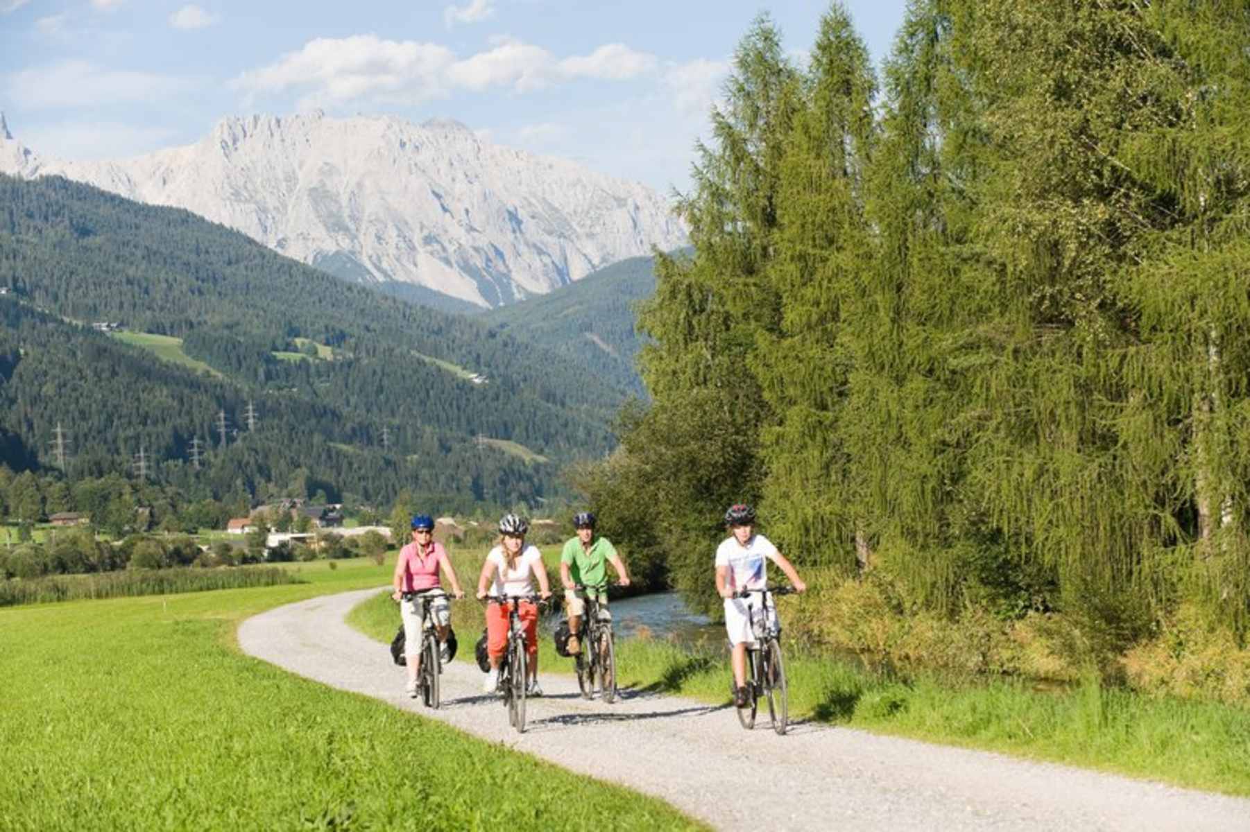 Familienfreundliche Radtour im Pongau im Salzburger Land. Von Radstadt geht es auf dem Ennradweg in gut einer halben Stunde nach Altenmarkt und weiter nach Eben. Am Ende der Tour wartet das Erlebnisbad Eben mit einer schönen Liegewiese und einer tollen Wasserrutsche auf Groß und Klein.