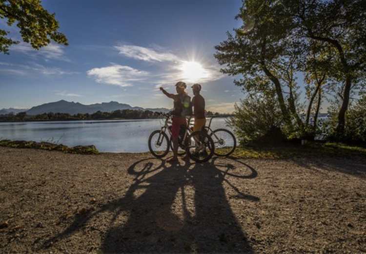 Rund um den zweitgrößten Binnensee Deutschlands: Diese Tour im Chiemgau führt auf 55 Kilometer über Feldwege, asphaltierte Radwege und Nebenstraßen rund um den Chiemsee, häufig auch „bayrisches Meer“ genannt. Zahlreiche Badestellen und Schiffsanlegestellen liegen am Weg, außerdem gibt es die Möglichkeit die Herreninsel mit dem berühmten Schloss Herrenchiemsee zu besuchen.