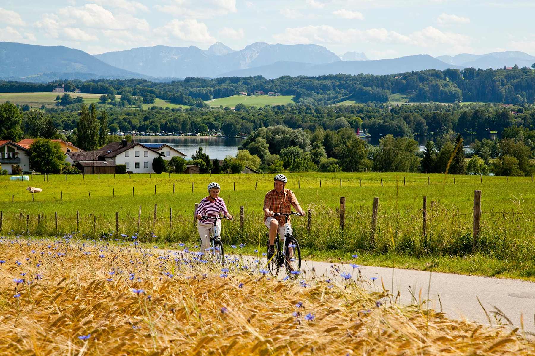 Die leichte, familiengeeignete Radtour rund um den Waginger See in den Chiemgauer Alpen (Bayern) führt bis auf wenige Kreuzungsbereiche abseits des Verkehrs durch wundervolle Natur- und Kulturlandschaft und bietet herrliche Aussichtspunkte.