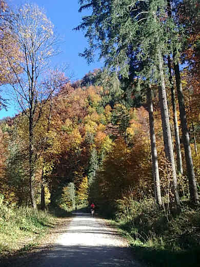 Kurze, aber sehr schöne und schattige Mountainbike-Tour bei Bergen in den Chiemgauer Alpen (Bayern), höchster Punkt auf 1.085 m. Die Radtour wird auch als Feierabend-Tour gepriesen, also als Empfehlung, nach einem stressigen Arbeitstag die Ruhe der Bergwelt zu genießen.