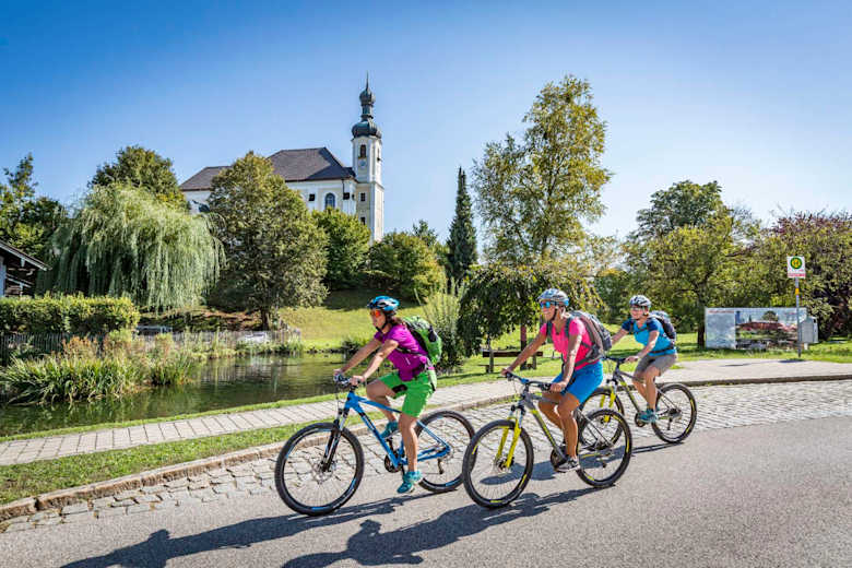 Hier ist der Umkehrpunkt der Tour erreicht und man wendet sich wieder Richtung Süden nach Pittenhart. Von dort aus fährt man nochmals auf der anderen Seeseite der „Eggstätt-Hemhofer Seenplatte" entlang bis nach Rimsting. Von hier aus sind es nur noch wenige Kilometer bis zum Ausgangspunkt in Breitbrunn.