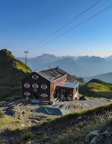 Die Heilbronner Hütte verfügt über eine umfangreiche Speisekarte und eine E-Bike-Ladestation.
