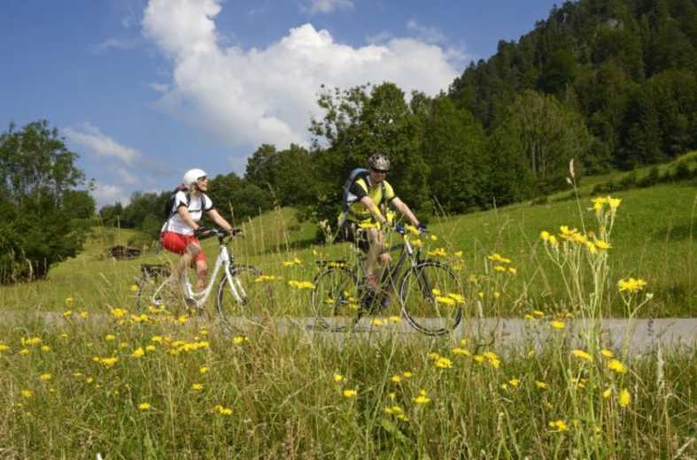 Auf der großen Chiemseerunde kann man die Bergwelt der Chiemgauer Alpen quasi grenzübergreifend erleben. Von Reit im Winkl (Bayern) radelt man einmal um das Bayerische Meer herum und über Österreich wieder zurück zum Ausgangspunkt. Die Strecke mit knapp 130 Kilometern und 1.200 Höhenmetern verläuft über gut präparierte Radwege durch idyllische Ortschaften und an einigen Badeseen vorbei.