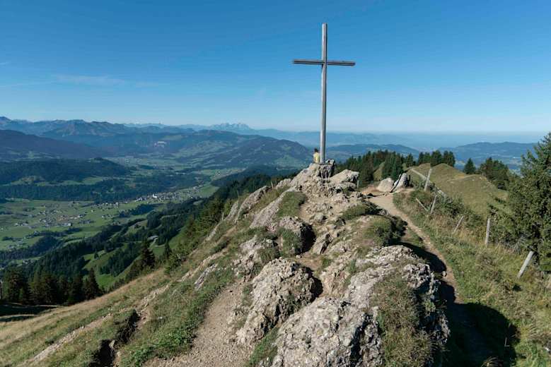 Aussichtsreiche Mountainbike-Tour im Bregenzerwald in Vorarlberg. Von Hittisau führt die Route über die Hennenmoosalpe auf den Hochhäderich (1.566 m). Vom westlichsten Berg der Nagelfluhkette genießt man einen schönen Blick bis zum Bodensee.