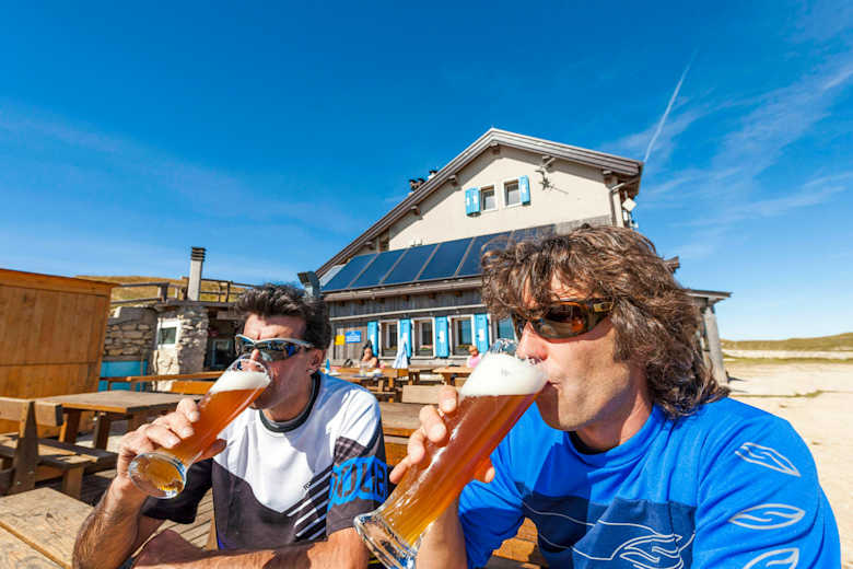 Ein Stück von der Hütte retour geht rechts weg der Adrenalina Downhill über die Malga Dosso dei Fiori und die Malga Grassi an den Gardasee. Bei diesem Trail sollte man sich unbedingt über die derzeitige Gesetzeslage und Erlaubnis der Trailbefahrung informieren.