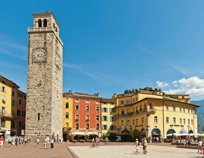 Mit der Bahn nach Rovereto (Bahnhof an der Brennerlinie) und mit dem Bus nach Riva.