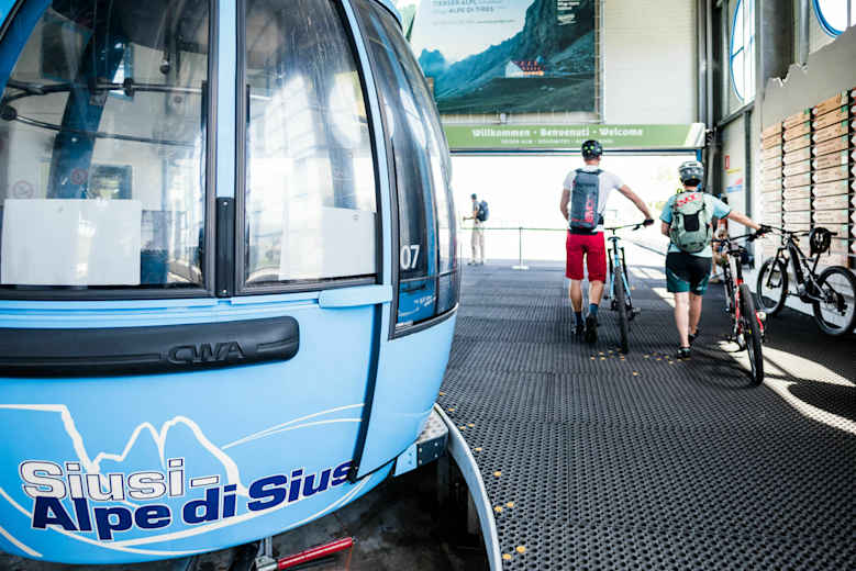 An der Talstation der Seiseralm-Bahn oder gebührenpflichtig am Parkplatz Kompatsch (nur bis 09:00 Uhr mit dem eigenen PKW erreichbar)
