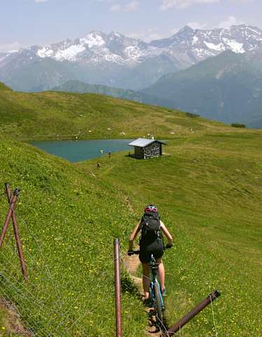 Die vielfältige Tour, welche man generell in den wärmeren Monaten machen sollte, bietet vor allem Freeride- aber auch Big Mountain, Croyy-Country und Marathon Elemente. Es gibt Einkehrmöglichkeiten, ein Brunnen zum Wasser Auffüllen und ein See.