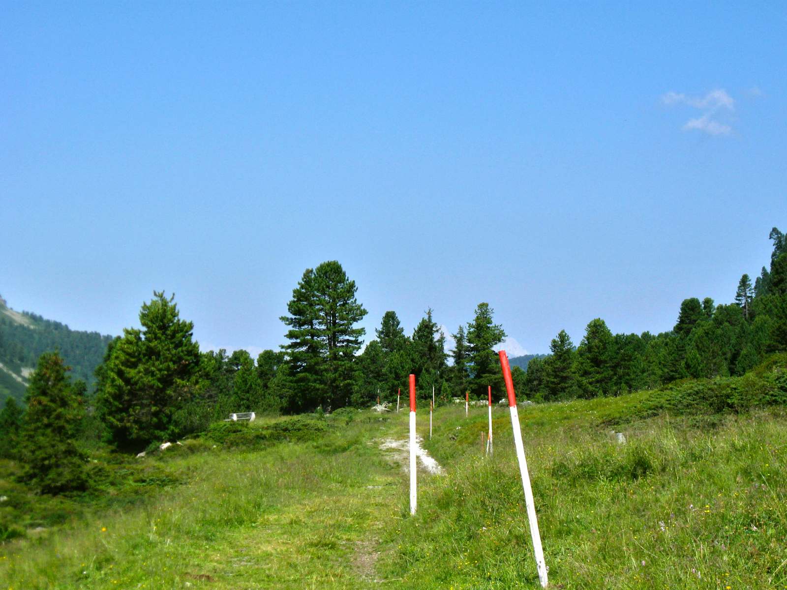 Der erste Single-Trail-Abschnitt führt auf festem Waldboden. Die schmalen Schräghangfahrten und engen Spitzkehren im steilen Gelände erfordern Fahrtechnik auf S3/G3-Niveau. Der zweite Single-Trail-Abschnitt weist keine nennenswerten Schwierigkeiten auf, ist dafür aber schwer zu finden. In Grün bei den ersten Häusern links abbiegen. Anschließend auf dem Wiesenweg bergab zum Heustadl mit der rotweißen Markierung und dort der Beschilderung Ötztal-Bahnhof bis ins Inntal folgen.