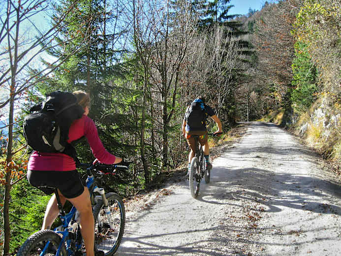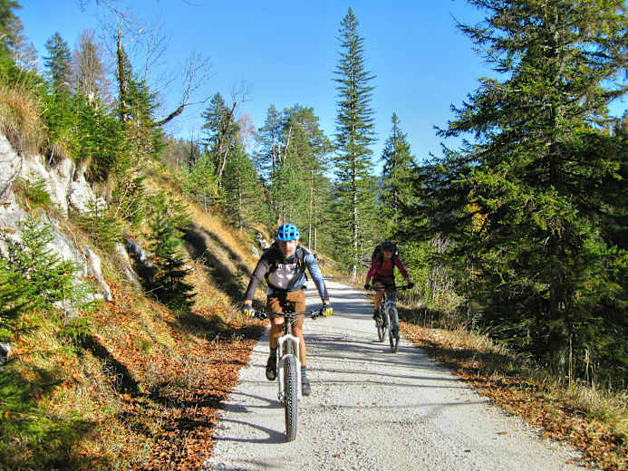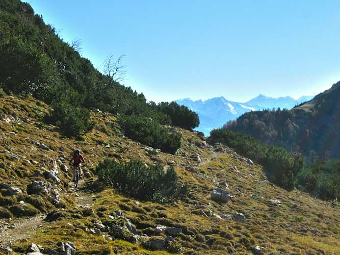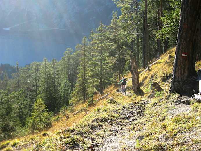 Zurerst folgt man der „Marchgatterl" Tour - bei der Köglalm auf der Forststraße bergab zum Achensee. Weiter geht es auf dem flachen Achensee-Radweg am östlichen Seeufer bis nach Eben am Achensee und von dort auf dem Bike-Trail-Tirol, der zu Beginn entlang der Achensee-Bahnstrecke führt, permanent bergab zurück zum Ausgangspunkt nach Wiesing.