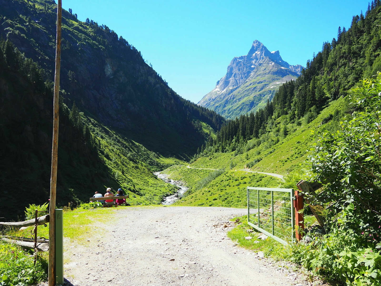 Auf der alten Arlbergstraße fährt man bis zur Bundesstraße und weiter bis zum Hotel Mooserkreuz. Dann geht es hinein ins Verwalltal, vorbei an der Stiegeneckkapelle.