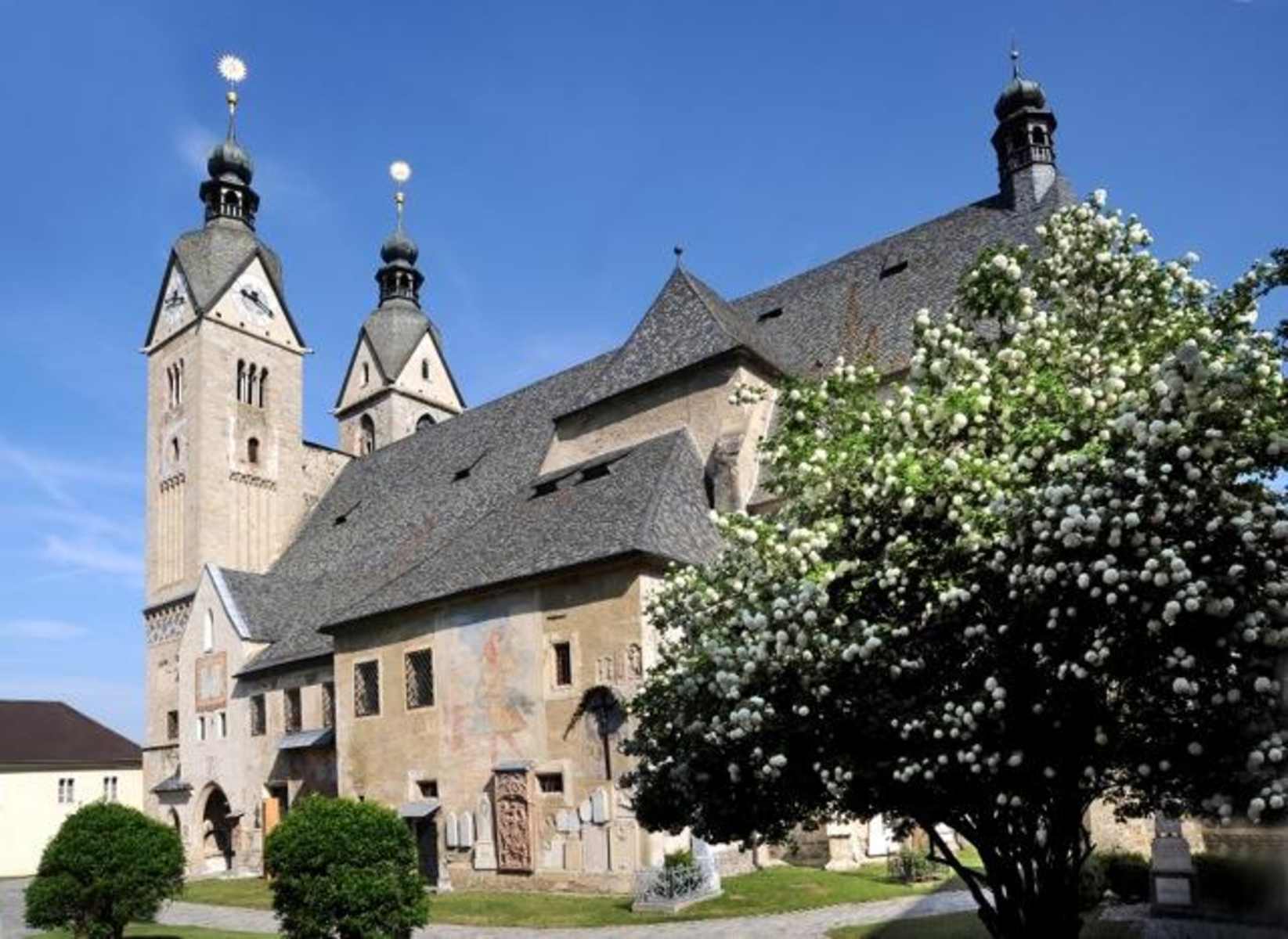 Weiter geht's zum spätgotischen Maria Saaler Dom mit seinen zwei mächtigen Türmen sowie zahlreichen Kunstwerken von der Antike bis zur Gegenwart.