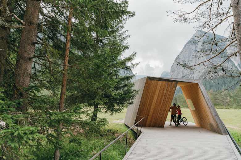 Nun berührt der Radweg den zweiten Bergsee im Höhlensteintal, den Dürrensee. Die Strecke verläuft weiter bis nach Schluderbach und schließlich zum höchtsen Punkt, dem Gemärk. Ab hier kann man den Fahrtwind bei der Bergabfahrt bis nach Cortina genießen.
