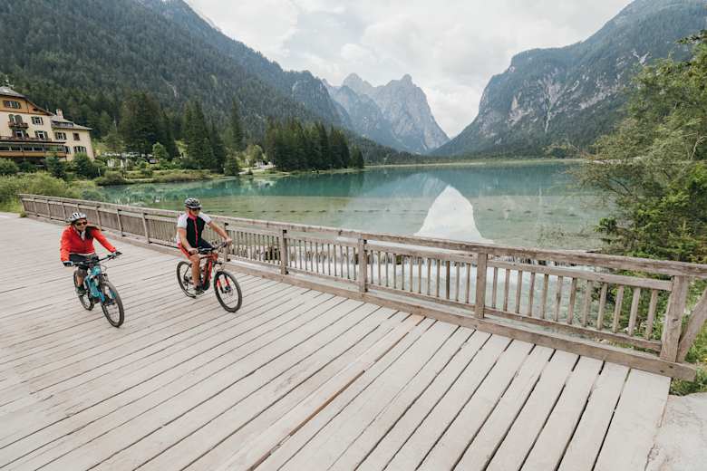 Die Strecke führt an besonders schönen Attraktionspunkten vorbei, bei denen man unbedingt anhalten sollte: der Toblacher See mit seinen Wasserspiegelungen, der Dürrensee, dem Drei Zinnen Blick und die Festung in Landro. Eine geschichtsträchtige Radtour für die ganze Familie zwischen dem Pustertal in Südtirol und der Olympiastadt Cortina in der italienischen Region Veneto.